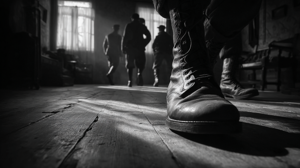 Dan wordt die wereld onderbroken. Tijdens de Tweede Wereldoorlog wordt Albert meegenomen om in Duitsland te gaan werken. Tegen zijn wil. Weg van huis. Weg van zijn familie. Zijn zoon Gust is nog een kind. De laarzen van de soldaten reiken tot zijn ooghoogte. Zwart. Zwaar. Indrukwekkend. Hij schopt ertegen. Niet uit heldendom. Maar uit zuivere liefde, voor zijn vader. Het helpt niet. Albert verdwijnt.